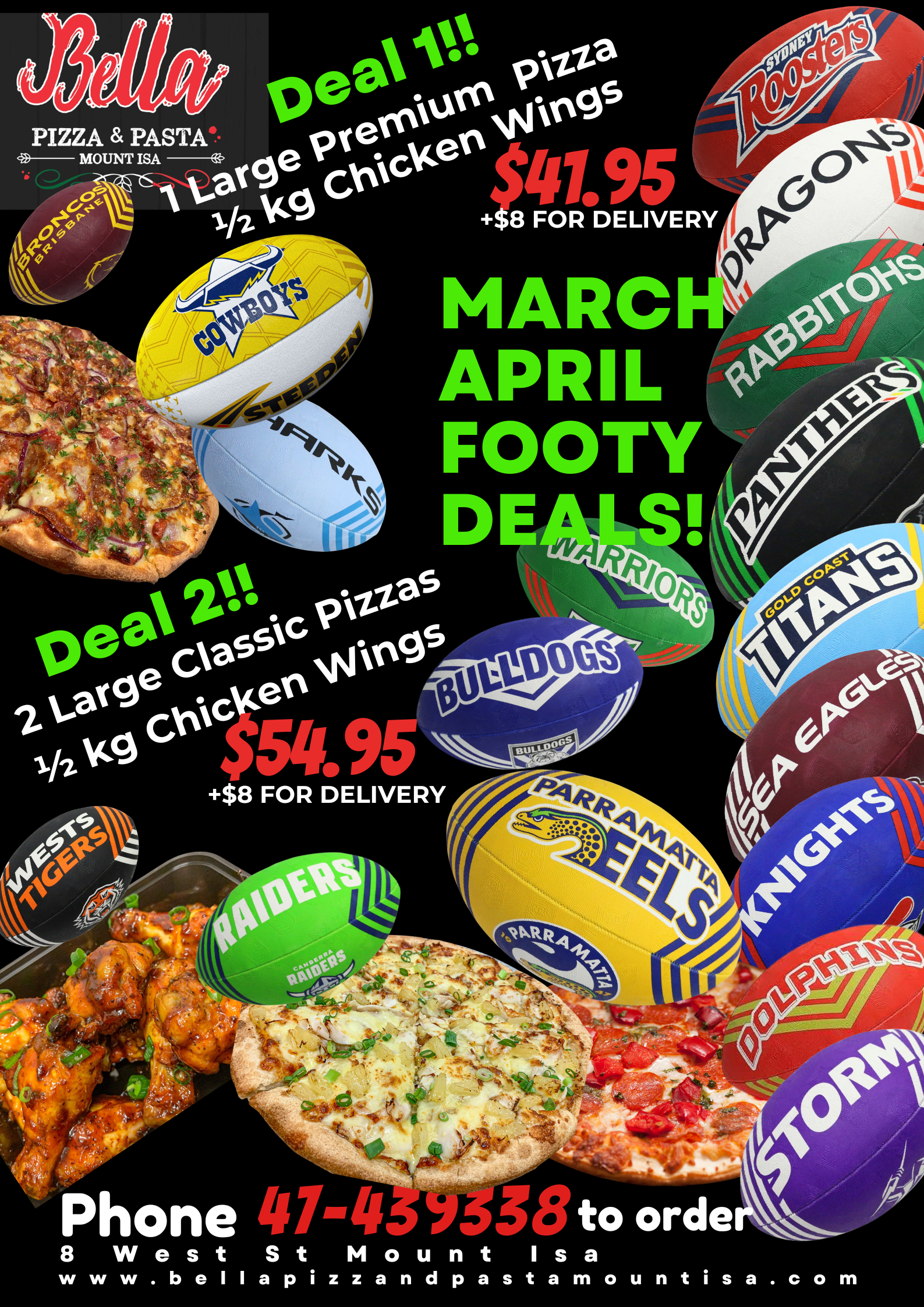 Bella Pizza & Pasta brings you a gourmet Italian experience unlike any other in Mount Isa. We pride ourselves is using premium quality ingredients, including whole cured Italian-style meats, to bring you delicious, authentic flavours.